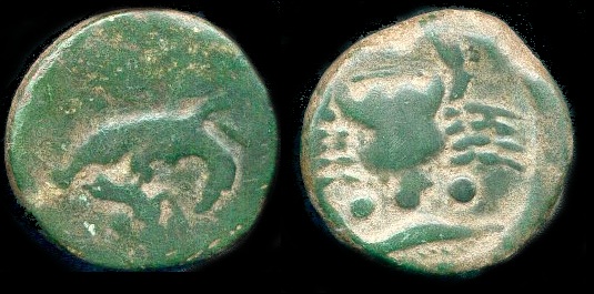 Akragas -AE Trias. Obv: Eagle with hare in talons, Rx: Crab and crayfish, three pellets. SNG Cop-77, Sear 1023