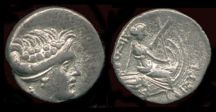 Histiaia --AR Tetrobol. Head of Nymph Histiaia rt., wreathed with vine. / Nymph seated upon the prow of a ship right. Most likely a modern fake.