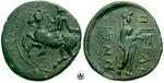 Pelinna -AE 16. Horseman galloping right spearing fallen enemy. R: Warrior advancing left, holding shield. cf S2166.
