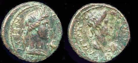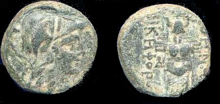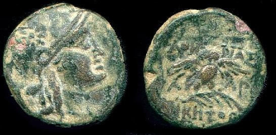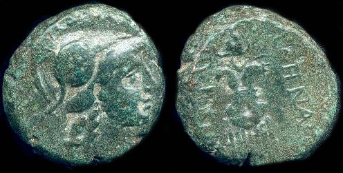 | Pergamon --AE18. Athena in helmet decorated with star/Owl with spread wings. SG 3963.