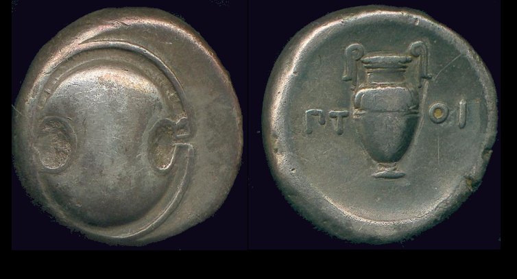 Thebes --AR Stater (11.92gm) Circa 395-338BC. Boeotian shield, Amphora. BMC Central Greece Pg 84, 160. SNG Cop 349.