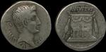 Augustus --AR fourree denarius. Head of Octavian/ Temple (Curia Julia?) with colonnaded base. RIC-266.
