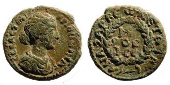 Crispina --AE21, Anazarbus. Obv.: draped bust r. Rev.: text within wreath; around, text. SNG BN 2043; SNG Levante-