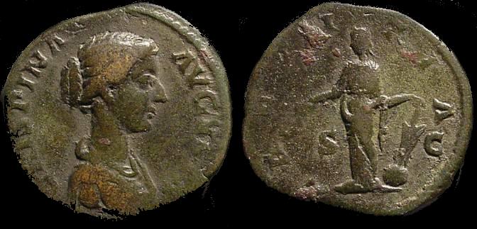 Crispina --AE Dupondius. CRISPINA AVGVSTA/LAETICIA SC, Laeticia standing left.