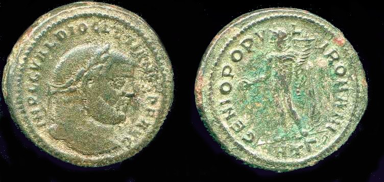 Diocletian --AE large follis (AE28). R: Genius standing left.