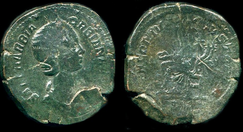Orbiana --AE Sestertius. (26.05g) SAL BARBIA ORBIANA [AVG] Diademed and draped bust right. / CONCORDIA AVGVSTORVM Concord seated left, holding patera and double cornucopia, SC at sides. RIC655.