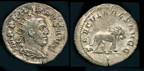 Philip I --AR antoninianus. R: Lion standing right/SAECULARES AVGG.