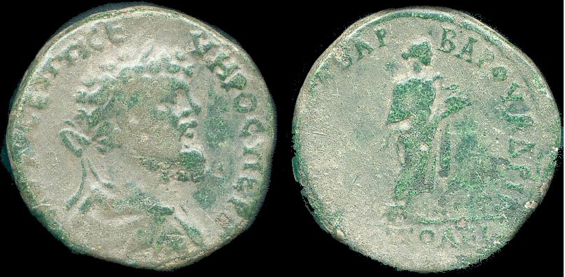 | Septimius Severus --AE26, Hadrianopolis. R: Hygieia standing right. Apparently unlisted, same obverse die as Jurokova V109 but not listed with this reverse issued under Barbarus.