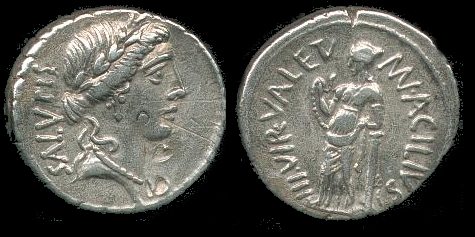 Man. Acilius Glabrio --AR Denarius. Laureate head of Salus right / Salus standing left, leaning against column and holding serpent. Crawford 442/1a; Sear 16; Sydenham 922; Acilia 8